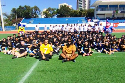 Alunos do CEU Paraíso-Alvorada e da EPG Anísio Teixeira participaram de uma oficina de Flag Football promovida pela equipe do Los Angeles Chargers, da liga de futebol americano dos Estados (NFL), no P...