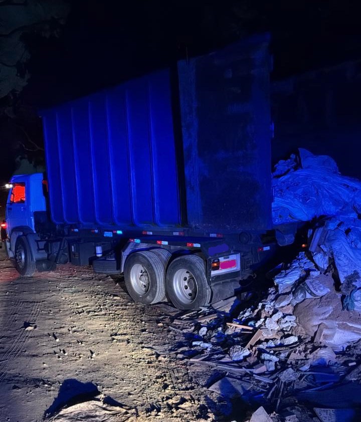 O veículo, pertencente à empresa SRS Gerenciamento de Resíduos Ltda., foi autuado e removido ao pátio municipal, com base na Lei nº 7.572/2017, que regula o descarte de resíduos sólidos na cidade.