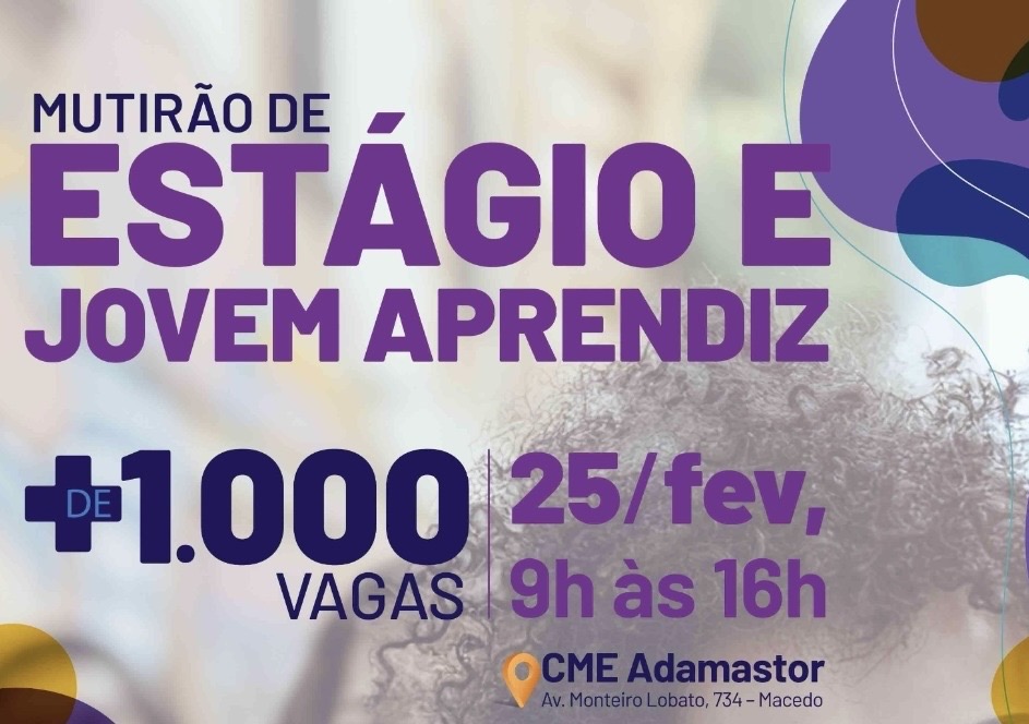 O Centro Municipal de Educação Adamastor (avenida Monteiro Lobato, 734 – Macedo) receberá nesta quarta-feira (25) o Mutirão Volta às Aulas, iniciativa da Prefeitura de Guarulhos que irá oferecer mais de 1.000 vagas de estágio e Jovem Aprendiz destinadas a estudantes dos ensinos médio e superior com idade entre 15 e 29 anos.