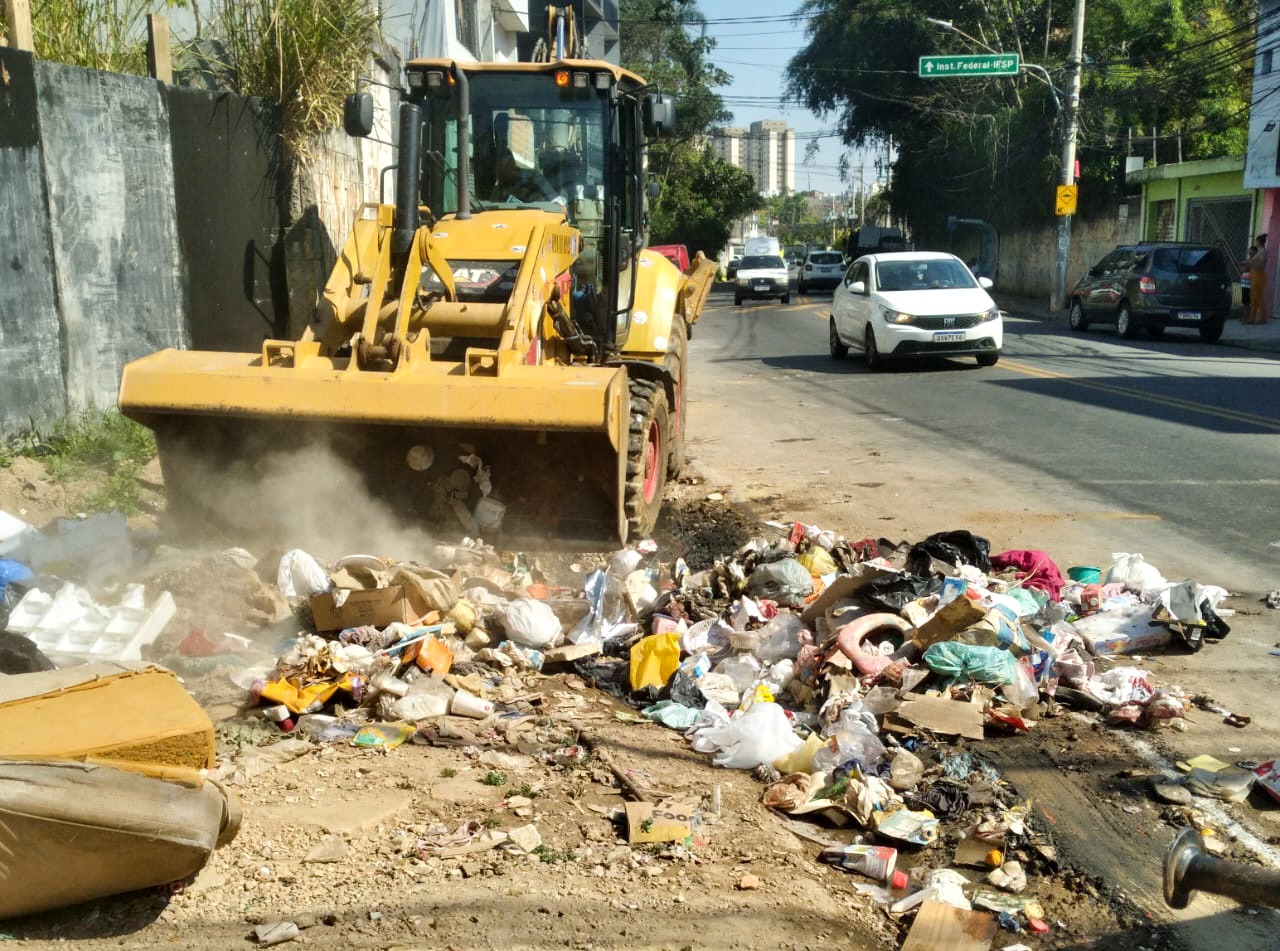 A calçada estava tomada por resíduos como caixas de papelão, isopor, colchões, lixo doméstico, entre outros. Para realizar a limpeza, a equipe utilizou uma retroescavadeira, além de um caminhão para recolher e transportar os materiais.