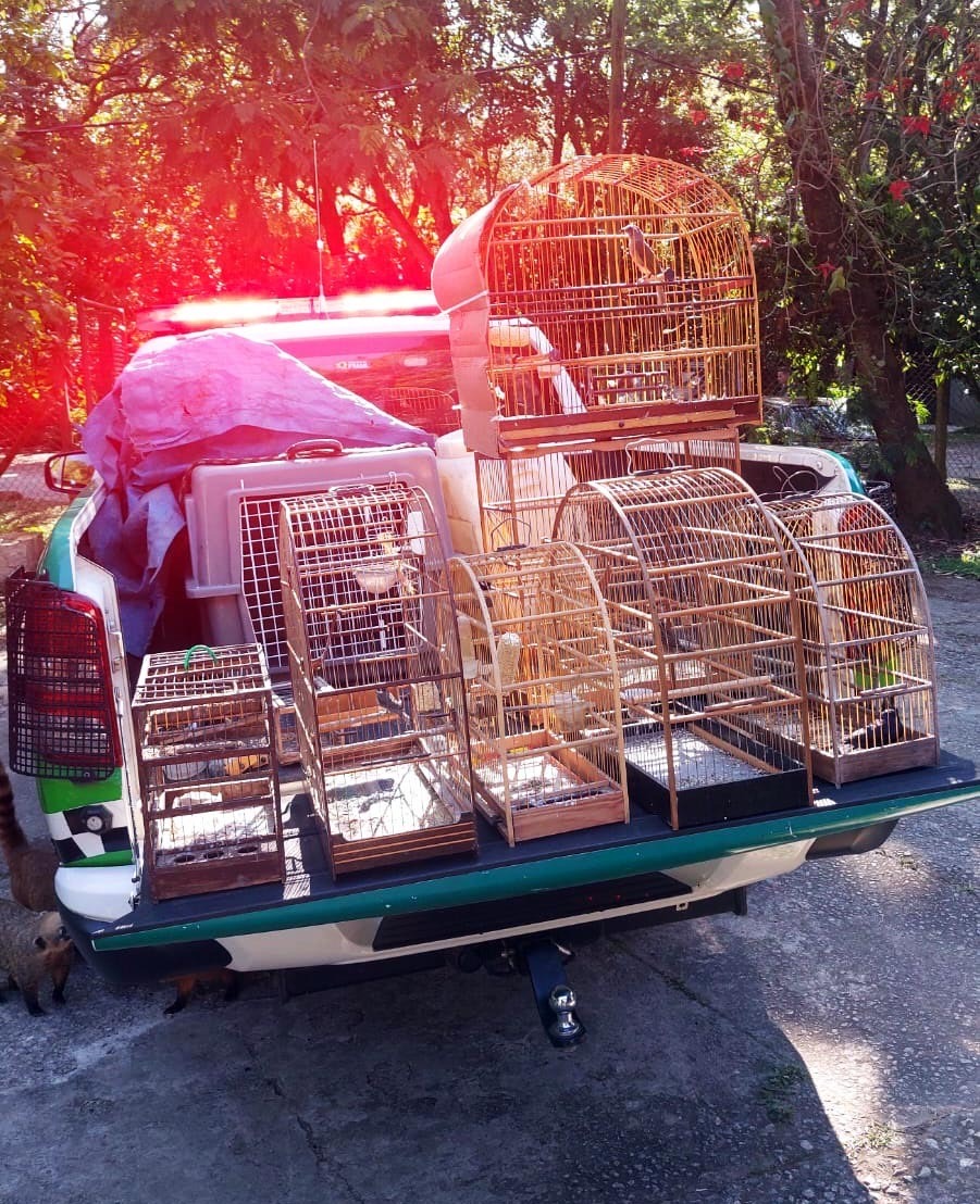 Durante patrulhamento pela região, a equipe encontrou seis gaiolas com os pássaros e um alçapão usado para captura criminosa em uma área próxima de mata. Nenhum responsável foi localizado.